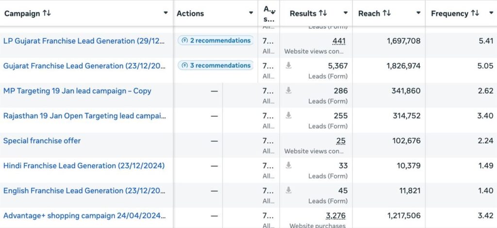 - 1,00,000+ Franchise Leads Generated via Meta Ads